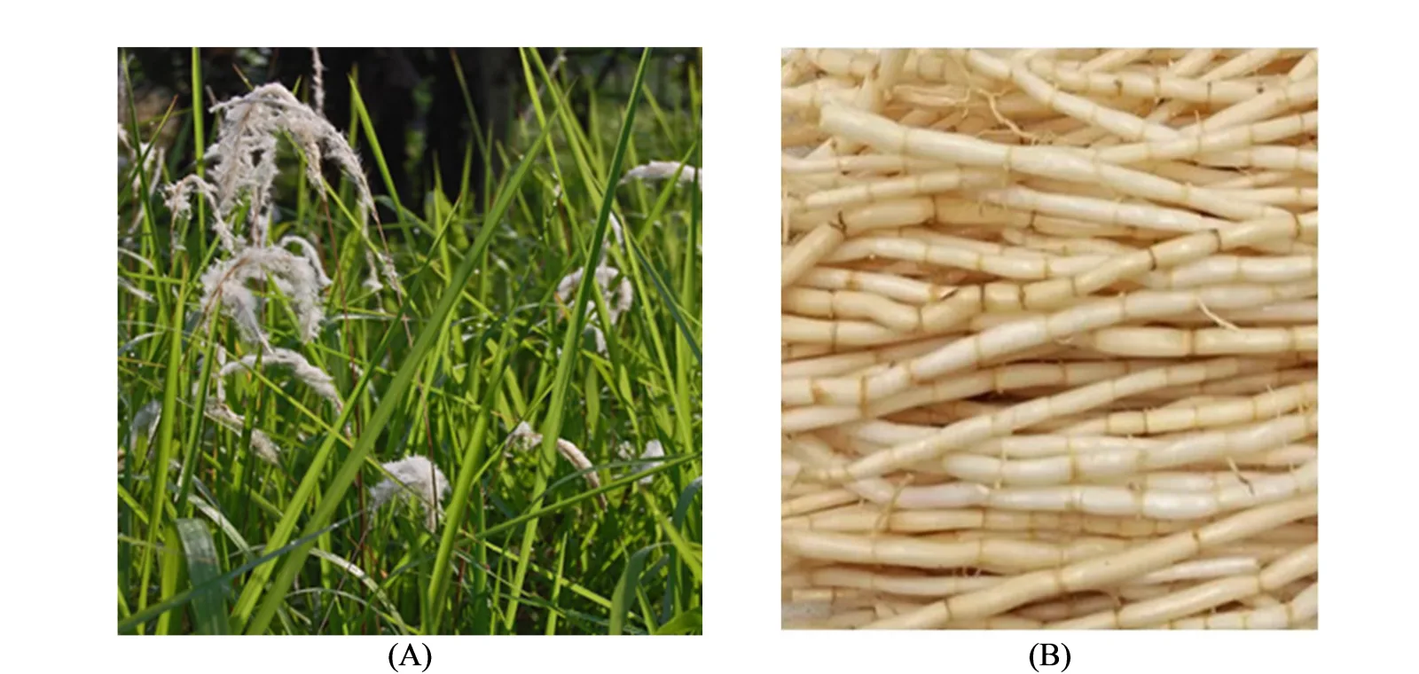 Gambar 2. (A) Daun dan bunga Imperata cylindrica (plantsandlandscapes, 2019). (B) Akar Imperata cylindrica (hlextract, 2017).